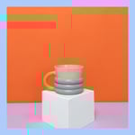 Speckled stoneware, orange & mauve exterior with clear glaze